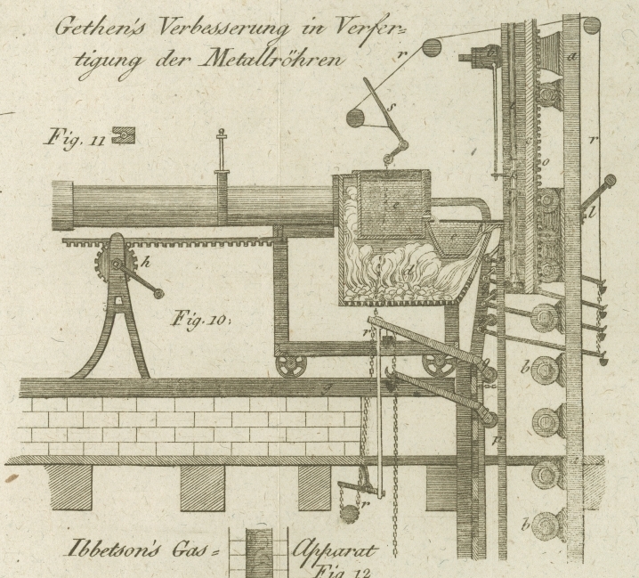 Gethen's, Maschinen und Verfahrungs-Arten, metallne Walzen, Röhren und Cylinder zu verfertigen.