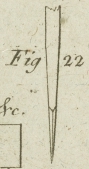 XXIII. Ueber einen italiänischen Bohrer für weiches und hartes Holz und Elfenbein. Von Hrn. H. W. Reveley. Aus Gill's technical Repository. Februar 1825. S. 112. Mit Abbildungen auf Tab. III. Reveley's, über einen Bohrer für weiches und hartes Holz etc. Dieser ungemein brauchbare Bohrer besteht aus einem duͤnnen Staͤbchen des besten Guß-Stahles in der Fig. 20. gegebenen Form: es laͤuft naͤmlich gegen jenen Theil hin, an welchem die Bohrer-Buͤchse auf die gewoͤhnliche Weise befestigt ist, verduͤnnt vierekig zu, und ist an dem naͤchst derselben gelegenen Ende zugerundet. Der Schaft ist walzenfoͤrmig, und wird gegen die Spize hin mit dem Hammer etwas keilfoͤrmig breit geschlagen, worauf er dann daselbst mittelst einer Uhrmacher-Feile in der in Fig. 10. im Durchschnitte dargestellten Form auf die in Fig. 21 und 22. gezeigte Weise zugefeilt wird, wo Fig. 21. denselben von vorne, Fig. 22. aber von der Seite darstellt. Er kann sogar noch kleiner seyn als in Fig. 23. und von jeder verlangten Groͤße bis zu 1/2 Zoll Breite. Die inneren Winkel seiner schneidenden Kante mit der Spize in der Mitte tragen sehr viel zur Wirkung desselben bei, und wenn er an beiden Enden sorgfaͤltig und gehoͤrig gehaͤrtet und temperirt wurde, ist er zum Gebrauche fertig, und wird mit großer Leichtigkeit glatte walzenfoͤrmige gerade Loͤcher sowohl in hartes als in weiches Holz und in Elfenbein und Bein bohren. Man hat uns versichert, daß man mittelst desselben ein Loch in hartes Holz bohren kann, indem dieses waͤhrend des Bohrens auf einer Spize ruht, die in einen an dem einen Ende desselben angebrachten Punct eingestukt wurde, und daß, wenn man das Holz, nachdem man dasselbe bis auf die Mitte gebohrt hat, umkehrt und fortbohrt, dieses Loch vollkommen genau in gerader Linie mit dem ersteren zusammenstoßen wird, gerade so, als ob es in einem fortgebohrt worden waͤre. Wir sahen diese Bohrer in allen Richtungen Loͤcher bohren in Buchsbaum, der Laͤnge nach, wie nach der Quere, und schief, immer mit der groͤßten Leichtigkeit und ohne daß es noͤthig gewesen waͤre, dieselben so haͤufig von Zeit zu Zeit heraus zu ziehen, um sie auszupuzen, wie die gewoͤhnlichen Bohrer. Man schaͤzt diesen Bohrer auf dem festen Lande sehr, und die italiaͤnischen Vogelbauer-Macher bedienen sich desselben vorzuͤglich, um Loͤcher in die duͤnnen Staͤbchen von Mahagony-Holz etc. zu bohren, aus welchem sie ihre Kaͤfige verfertigen, damit sie die Drahte ohne Gefahr des Zersprengens durchziehen koͤnnen; und so wie er sich zu dieser delicaten Arbeit schikt, schikt er sich zu vielen aͤhnlichen Anderen. Man wendet ihn gewoͤhnlich so an, daß man sein zugerundetes Ende in einem Loche ruhen laͤßt, welches in einem Bloke harten Stahles angebracht ist, und dann das zu bohrende Stuͤk in die linke Hand nimmt, waͤhrend man mit der rechten den Bogen fuͤhrt, so wie es bei Uhrmachern gewoͤhnlich ist: eine Methode, die, wo Genauigkeit bei der Arbeit erfordert wird, sehr zu empfehlen ist. Hr. H. W. Reveley wuͤnschte, daß wir diesen Bohrer bekannt machten, indem er sich aus vieljaͤhriger Erfahrung von den Vortheilen desselben uͤberzeugte, und der Meinung ist, daß derselbe allgemeiner bekannt zu werden verdient. Wir haben nur ein Mahl einen, einiger Massen aͤhnlichen Bohrer gesehen, der aber nur in der Drehbank zum Bohren kleiner Loͤcher in Lindenholz angewendet wurde; er war daher an den beiden gegenuͤber stehenden Seiten etwas ausgehoͤhlt, beinahe wie die flache Seite eines Centrir-Bohrers (Centre-bit.) Ein Fortepiano-Macher bediente sich desselben zur Verfertigung der kleineren Theile dieses Instrumentes, und empfahl ihn gar sehr.