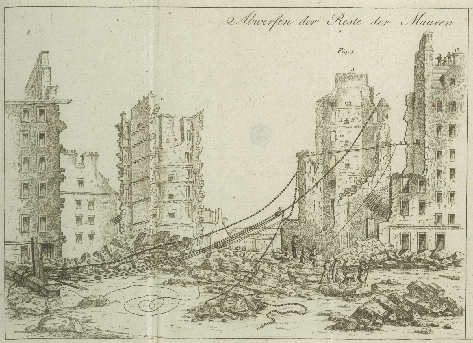 Titel: Bericht über das Abtragen der Reste der Mauern, die nach dem lezten großen Brande zu Edinburgh vom 15. und 17. November 1824. noch übrig blieben. Von einem See-Officier.