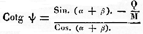 M Cos. (α + β) = (M. Sin.(α + β). – Q). Tang ψ.