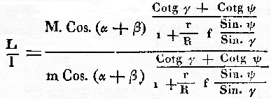r/R oder, weil D.Sin.DCA = L.Sin.LCA und Winkel DCA = ψ + γ, so wie LCA = ψ, folglich, D = L Sin.ψ/Sin.(ψ + γ)'