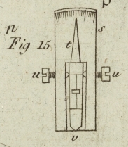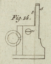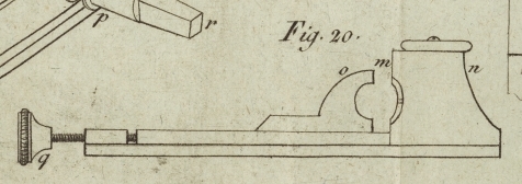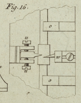 LXIII. Ueber Verfertigung freier und vollkommener Tangenten-Schrauben zu astronomischen und mathematischen Instrumenten und anderen Zweken. Von dem sel. Hrn. Jak. Allan, mathemat. Instrumenten-Macher zu London. Im Auszuge aus den Transactions of the Society for the Encouragement of Arts, 34. B., mit Veraͤnderungen von Hrn. Gill, in dessen technical Repository. Mai. 1825. S. 295. Mit Abbildungen auf Tab. VIII. Allan, über Verfertigung freier und vollkommener Tangentenschrauben. Hr. Allan fand große Schwierigkeit, Schrauben in den gewoͤhnlichen Patronen zu schneiden: er konnte zwei Fehler nicht beseitigen; der erste war der, daß die Gaͤnge der Schraube nicht eine genaue regelmaͤßige Neigung hielten; der andere, daß, in Folge der Kraft, die bei dem Schnitte der Schrauben angewendet werden muß, sowohl bei einem Patronen-Paare, als bei Schraubenplatten, die Schraube nothwendig gebogen und gedreht werden muß. Er konnte sie also nie genau und regelmaͤßig genug in ihrem Zuge machen, um sie mit aller Leichtigkeit spielen zu lassen. Vor ungefaͤhr 30 Jahren, wo Hr. Allan mit dem beruͤhmten Hrn. Fairbone arbeitete, hatte er zwei Teleskope aufzusezen, das eine fuͤnf, das andere sieben Fuß lang. Jeder Aufsaz hatte zwei Schrauben, (Tangenten-Schrauben), die eine um das Teleskop horizontal, die andere um dasselbe vertical zu bewegen. Er entwarf damahls den Plan, den wir hier beschreiben, der aber nicht mehr ausgefuͤhrt ward. Dieser Plan ist eine einfache und leichte Methode, eine gute Schraube zu verfertigen. Jeder ertraͤgliche Metall-Arbeiter kann das hierzu Noͤthige verfertigen, indem die Auslage die Ausgaben, die man fuͤr gemeine Patronen und Zugehoͤr noͤthig hat, nicht uͤbersteigt. Die Schraube wird nicht bloß dadurch hoͤchst genau, und leicht ziehend, sondern man kann auch jeden Zug auf diese Weise an seine gehoͤrige Stelle bringen, indem man sie naͤmlich in verschiedene Theile theilt, und an verschiedenen Stellen zu schneiden anfaͤngt, so wie man die Zaͤhne an einer Theilungs-Maschine zu schneiden beginnt. Der groͤßte und wichtigste Zwek, zu welchem man eine Schraube verwenden kann, ist zur mathematischen Theilungs-Maschine, und diese fordert bloß eine kurze Schraube, die man mittelst dieser Vorrichtung leicht verfertigen kann. Die Maschine oder Vorrichtung, oder das Werkzeug, welches der sel. Hr. Ramsden verfertigte, um die Schraube zu seiner Theilungs-Maschine zu schneiden, konnte, wie Hr. Allan vermuthete, nicht weniger als 50 Guineen gekostet haben, und konnte doch nur eine kurze Schraube liefern. Die Erfahrung, die Hr. Allan waͤhrend einer Reihe von Jahren bei Eintheilung mathematischer Instrumente sich erwarb, gewaͤhrte ihm jenes Zutrauen auf die Schraube seiner eigenen Maschine, die er nach seiner Methode verfertigte, daß er mittelst derselben alles eben so genau verfertigen konnte, wie Hr. Ramsden mit der seinigen. Auf eben diese Weise koͤnnen auch die besten Stellschrauben fuͤr astronomische Instrumente verfertigt werden. Erklaͤrung der Figuren. Fig. 13. zeigt die Maschine oder das Gestell zum Schraubenschneiden. n, ist der Stok, welcher die Patrone, m, haͤlt: oo, sind die beiden Haͤlter oder Halbloͤcher, welche auf der einen Seite den Cylinder halten, der geschnitten werden soll. Sie sind auf einer Scheibe befestigt, welche sich zwischen den Schwalben-Schweifen, pppp, hinschiebt. q, ist eine Stellschraube, welche den Cylinder gegen die Patrone oder den Schneider schiebt. Die Patronen oder Schneider sind in ihren Stellen eingeschnitten, und folglich auch genau zu den Haͤltern passend. Nachdem die freie Schraube der Form nach aͤhnlich der Schraube, a, die als in die Haͤlter, oo, geschnitten dargestellt ist, gemacht wurde, wird eine kleine Kurbel an dem vierekigen Ende derselben bei r, angebracht, um sie in den Haͤltern zu drehen. Die Haͤlter muͤssen vollkommen zwei Mahl so weit von einander entfernt seyn, als die Schraube, welche geschnitten werden soll, lange ist. Um die freie Schraube vollkommen genau, und mit jeder beliebigen Anzahl von Windungen, sowohl rechts wie links laufend, schneiden zu lassen, wird der Stok und der Schneider, die in Fig. 14. von der Seite, in Fig. 15. von vorne dargestellt sind, auf der festen Basis der Maschine befestigt, wie es theilweise im Grundrisse derselben, Fig. 16. angegeben ist. Der Ruͤken des Stokes, s, ist als Ausschnitt eines Kreises gebildet, und der obere Theil des Schneiders, t, ist wie ein Weiser. Der Schneider hat bloß einen einzelnen, dichten, scharfen Gang in seiner Mitte, mit einer querlaufenden Kerbe, wie an den gewoͤhnlichen Patronen, und kann unten auf seiner Kante, v, als Mittelpunct, sich rechts und links bewegen. Dieser Schneider muß genau passen, und so der Stok auf ihn, damit er vollkommen fest gehalten wird. uu, sind die zwei Stellschrauben, die den Schneider unter jedem verlangten Winkel fest halten. Die Hoͤhlung unter dem Schneider soll vielmehr elliptisch, als kreisfoͤrmig, seyn; denn es ist am besten, wenn er auf den Cylinder unter dem groͤßten Winkel paßt, unter welchem er jemahls gebraucht werden kann. Nachdem der Cylinder eine Umdrehung erhalten hat, wird ein Zahn, w, in den Schnitt desselben eingepaßt, und an die Schieberplatte fest geschraubt. Dieser Zahn sichert die Leitung, und macht, daß jeder folgende Gang eine Wiederholung des ersten wird; und, obschon dieß auch ohne den Zahn geschehen kann, so ist dieß doch noch eine Sicherung mehr fuͤr die Maschine. Man braucht zu jeder Schraube zwei verschiedene Patronen: die eine, Fig. 17. paßt auf den aͤußeren Durchmesser des Cylinders, der geschnitten werden soll, und gibt der Schraube die wahre Leitung; nachdem diese ein Viertel oder ein Drittel eingeschnitten hat, wird sie herausgenommen, und eine andere Patrone, Fig. 18. wird dafuͤr eingesezt. Diese, wie die punctirten Linien in Fig. 18. zeigen, paßt auf den Grund der Schraubengaͤnge der beabsichtigten Schraube. Obschon die Patronen (an ihrer Stelle verfertigt)