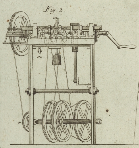 gesezt, entweder mittelst einer Kurbel, oder mittelst eines Triebwerkes, das mit der