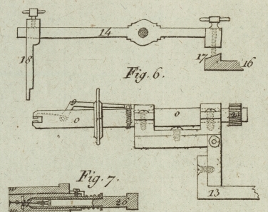 Hinsicht wird der Nadelhaͤlter auf folgende Weise gedreht. Auf der Achse, f, (Fig. 3.) ist ein
