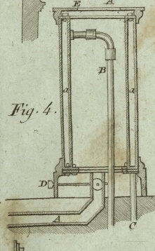 zugefuͤhrt, und die Luft und das Wasser werden durch die Roͤhre, C, ausgefuͤhrt. Der Zutritt der frischen Luft