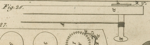 Holz, und sind an ihrem Ende mit einem Sperr-Rade versehen, A. Ueber diesem Rade ist ein Stuͤk Eisen, B,