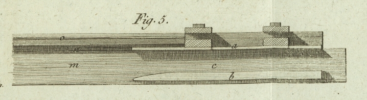 welche gut geschliffen und polirt seyn muß, damit der Treiber, g, sich leicht auf derselben hin- und herschieben