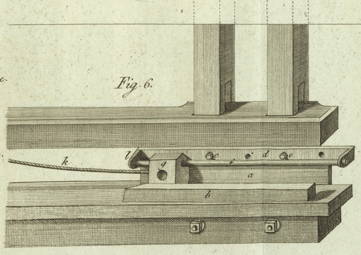 lasse. Dieser Treiber haͤngt frei auf der Stange, f, wie Fig. 7. zeigt, und wird von zaͤhem und nicht zu schwerem Holz, als