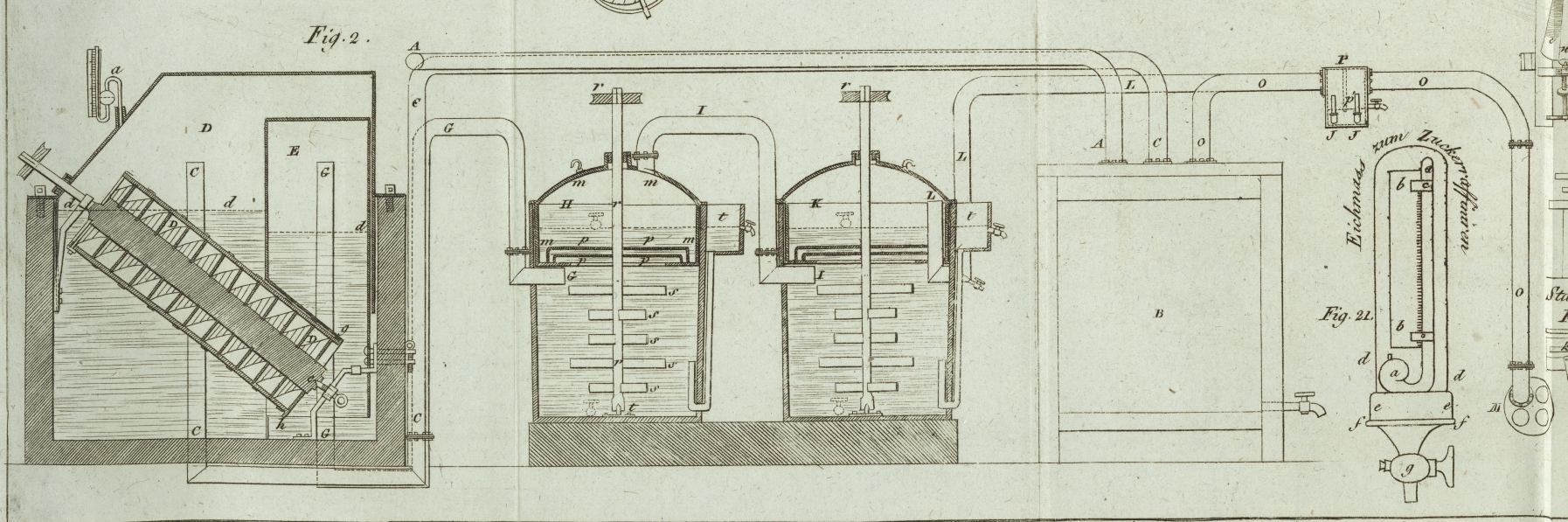 unten ein großer Hahn angebracht, durch welchen das Kalkwasser abgelassen werden