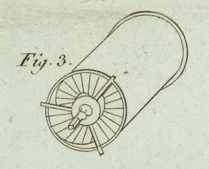 umher gedreht, die durch einen Laufriemen in Bewegung gesezt wird. Fig. 3. zeigt den Bau