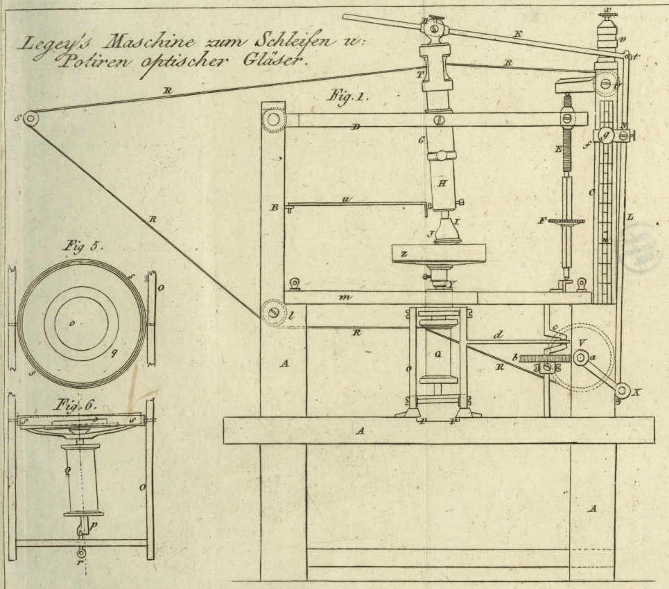 Poliren optischer Glaͤser, von der Erfindung des Hrn. Legey, Verfertiger mathematischer Instrumente,