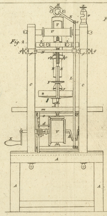 A, A, Gestell der Maschine; A', Tragbalken. B, B, die beiden vorderen