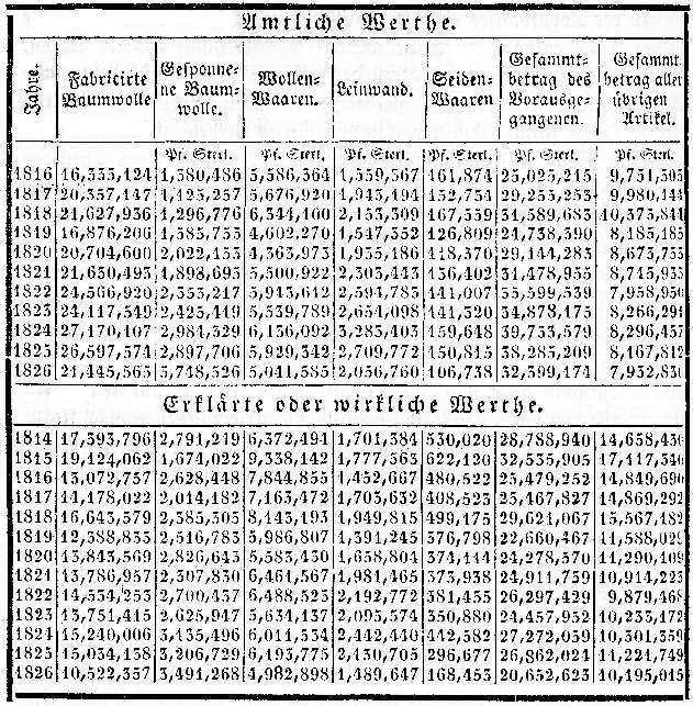 Der amtliche Werth vom Jahre 1826 war aber 21,445,565 Pf. Sterl. und der wirkliche