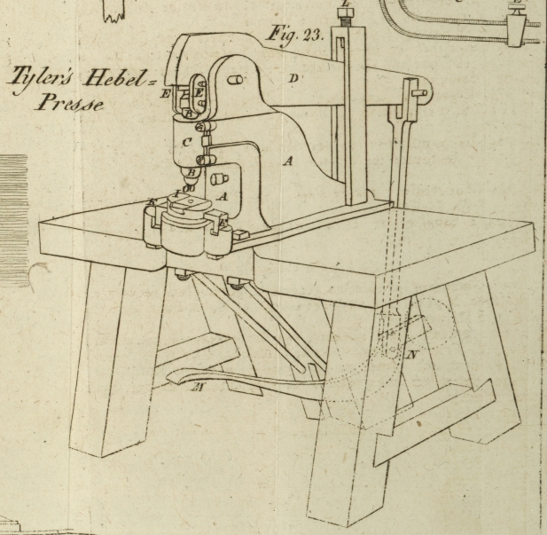 | Titel: | Beschreibung einer verbesserten Hebelpresse zum Durchschlagen. Von Tyler. |