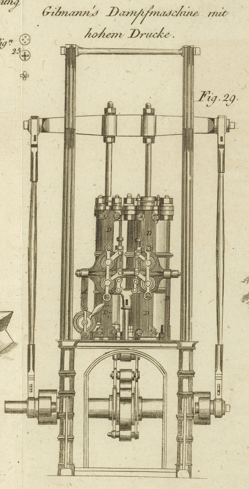 | Titel: | Hrn. Gilman's Dampfmaschine mit hohem Druke. |