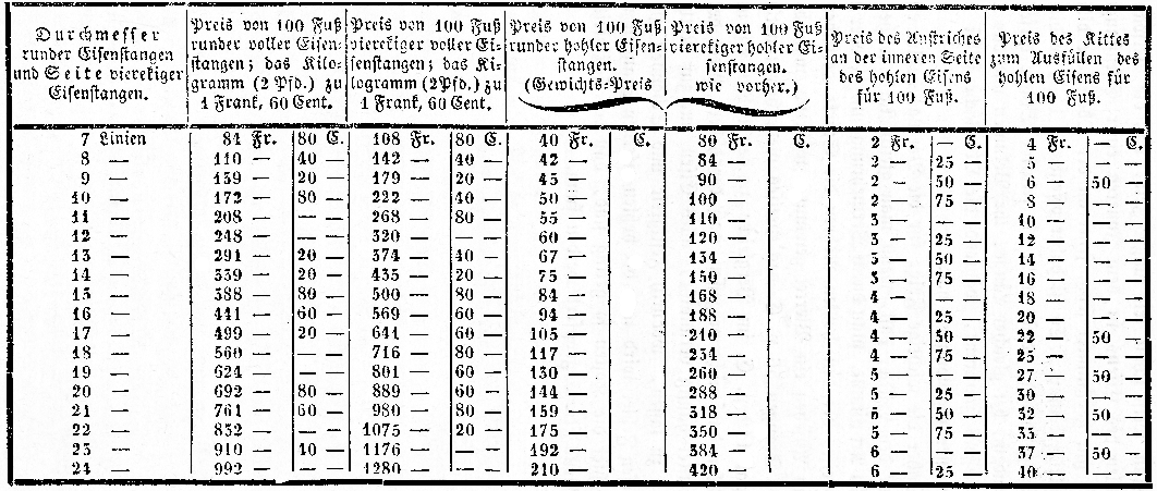 voller Eisenstangen; das Kilogramm (2 Pfd.) zu 1 Frank, 60