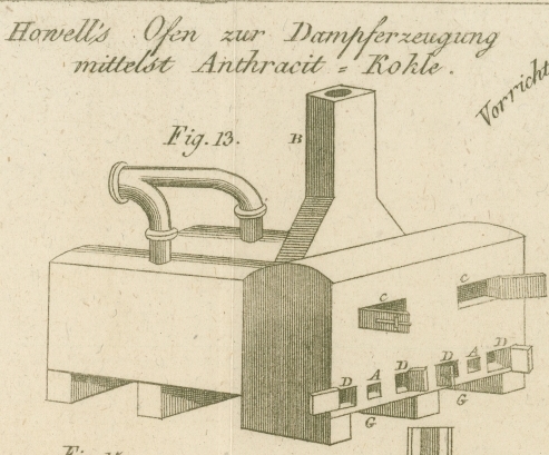 | Titel: | Amerikanischer Patent-Ofen zur Dampferzeugung mittelst Anthracit-Kohle, und zu verschiedenen Fabrik-Arbeiten, bei welchen man großer Hize bedarf, und worauf Benj. B. Howell, zu Philadelphia, sich am 14. Oktbr. 1828 ein Patent ertheilen ließ. |