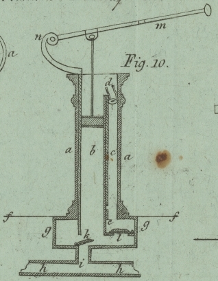 Pumpen-Cylinder mit seinem Staͤmpel. c die