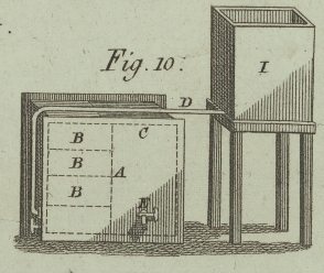laͤuft durch das Filtrum, und wird in die Wasserbehaͤlter des