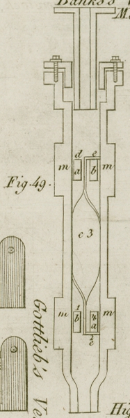 stellt einen Staͤmpel und seine Staͤmpelstange dar. Das Gefaͤß a ist mit der Roͤhre, die durch punktirte Linien