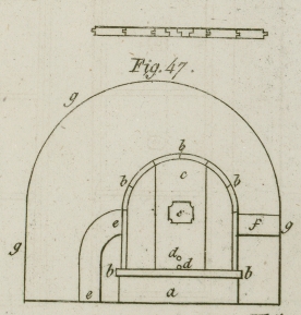 Erde eingelassen sind. Auf der entgegengesezten Seite, g, sind fuͤnf Steine in dem Gewoͤlbe angebracht, auf welche das