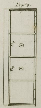 Abtheilung c, ist die Ziffer I, und befinden sich nach unten zu zwei Oeffnungen, dd. Durch die obere dieser Oeffnungen laͤßt