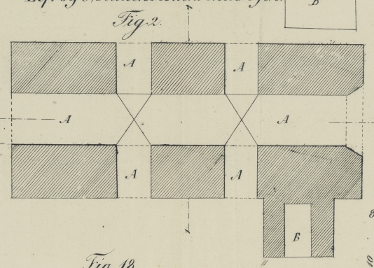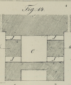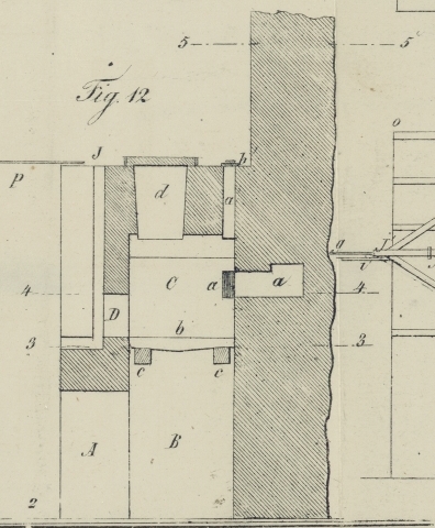 runden Eisenstangen, die sich in den Augen der Oehrbolzen f'f' schieben, welche in Schraubenmuttern, die in das Mauerwerk