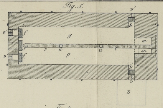 b' und e'.A. d. O. mittelst Schrauben mit ausgekerbtem Kopfe festgemacht sind. Das zweite