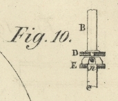 befindet sich gegen die Mitte des bimetallischen Stabes EE in der Naͤhe der Stange C bei s. Wenn man die