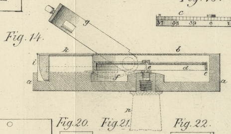 Dieser cylindrische, fixirte Rand ist mit Eintheilungen versehen; ein kleiner Hebel,