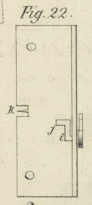 Gehaͤuses sicher ist, und die in dem messingenen Dekel b und der Handhabe g angebrachten Kerben oder