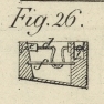 Aus einem Blike auf Fig. 24, 25 und 26 wird man ersehen, daß der Eintrag durch die Klammern cc, durch das Oehr oder durch das Knie in dem