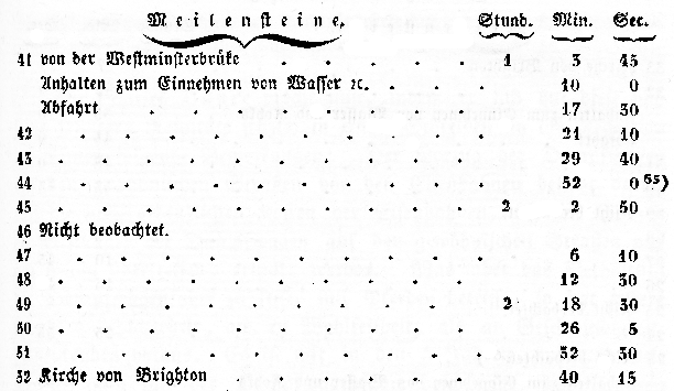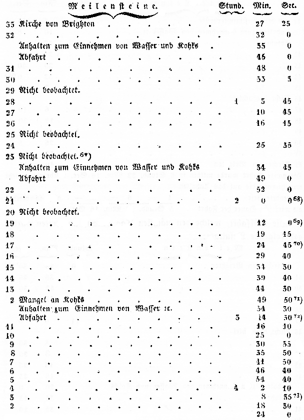 ganze Streke mit Einschluß von 21 1/2 Minuten, die er zum Einnehmen von