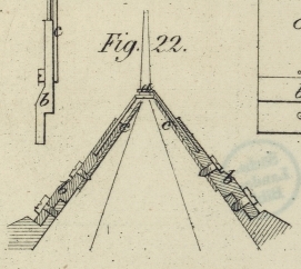 eingelassen. In Fig. 20 sieht man eines dieser Bleie mit einer Reihe gebogener Spizen von