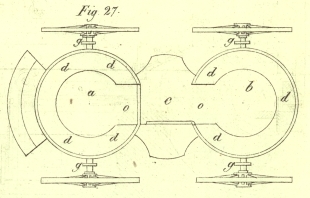 angedeutet ist, drehen kann. Wirft man nun einen Blik auf Fig. 28, wo der Omnibus