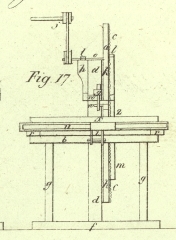 oder beweglicher Support fuͤr die Welle, an der das untere Rad b umlaͤuft. Das obere Rad a wird mittelst einer an seine Welle o