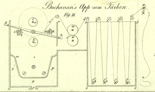 Maschinerie, womit das Faͤrben und die uͤbrigen Operationen auf eine