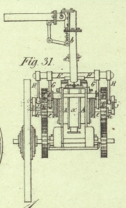 excentrischen Cylinder. Ferner die Bewegung des Schiebers D mittelst der Kurbelzapfen h, h,
