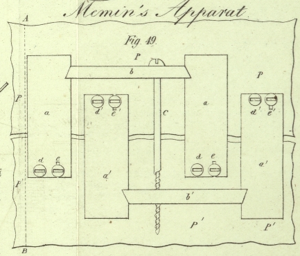 einander unabhaͤngigen Vorrichtungen. Jede derselben ist, wie Fig. 49 zeigt, aus vier