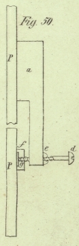und dieselbe Flaͤche zu bringen. Eine dieser Schrauben e z.B., welche, wie Fig. 50 zeigt, in einen
