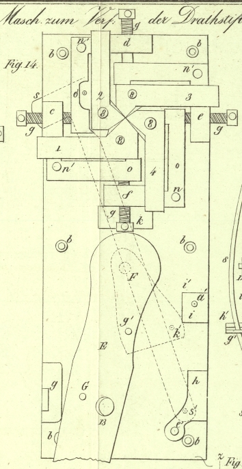 | Titel: | Kehlmann's Maschine zur Verfertigung der Drahtstifte für Klaviermacher. |