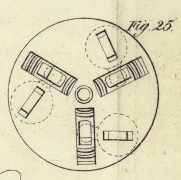 f, f, f an ihren Mittelstiften und Muttern g, g, g; und diesen ist gestattet, sich in den