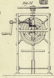 dieser Figur angedeuteten Theilen besteht. Die Platte oder Metallscheibe a, a, in welche die spiralfoͤrmige Rinne b, b geschnitten ist, ist, um deren Anwendung deutlicher