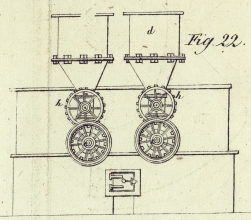 verwandelt wird. An dem Ende der Welle der endlosen Schraube c, c befindet sich eine lose und eine feste Rolle; um leztere ist der