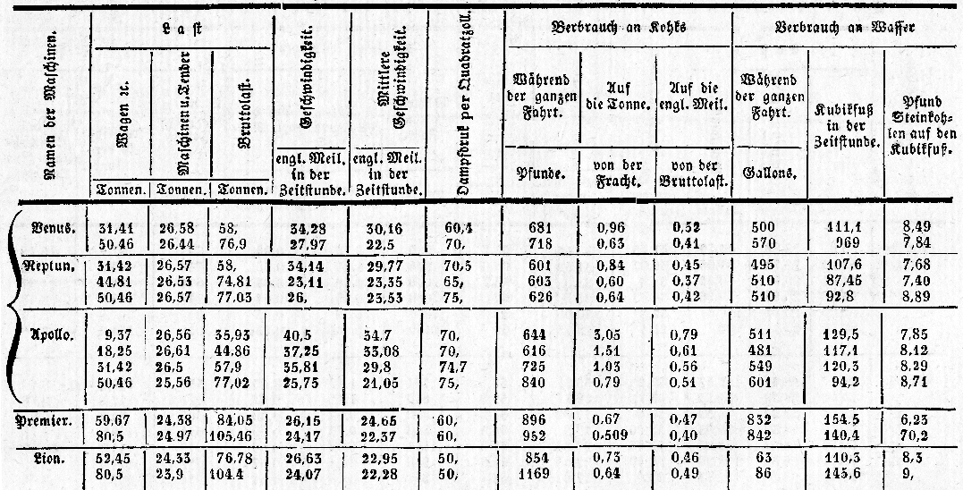 mehr 15 Tonnen. Der Aeolus zog bei einer Geschwindigkeit von 23 engl. Meilen 104