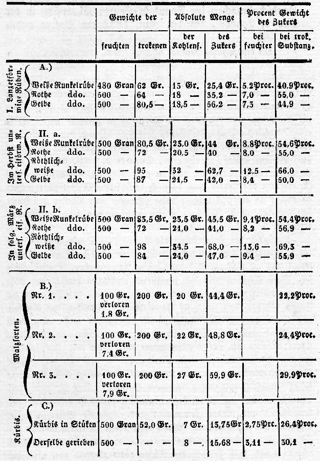 Beruͤksichtigung ihres FeuchtigkeitsverhaͤltnissesZ.B. 500 feuchte Ruͤben haben 80 Gran trokene Ruͤben und 24 Gr.