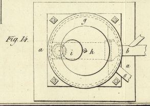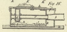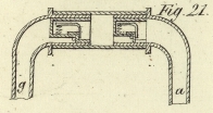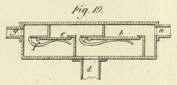 dem anderen mit der gegenuͤberliegenden Wand des Gehaͤuses in Verbindung gesezt. d ist ein eigens geformtes Ventil, welches die Luft in