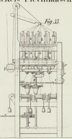Die Spindeln der Flechtspulen sind, wie gewöhnlich, Röhren, um das Mittel an die Hand