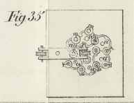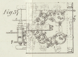 sizend, ein Rad o, welches in ein anderes Rad p greift; eine an der Spindel dieses Rades befindliche