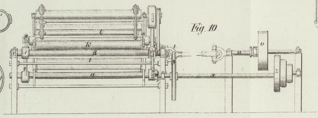 Walzen fortgeleitet. Auf einer dieser Walzen läuft eine andere nach Art der